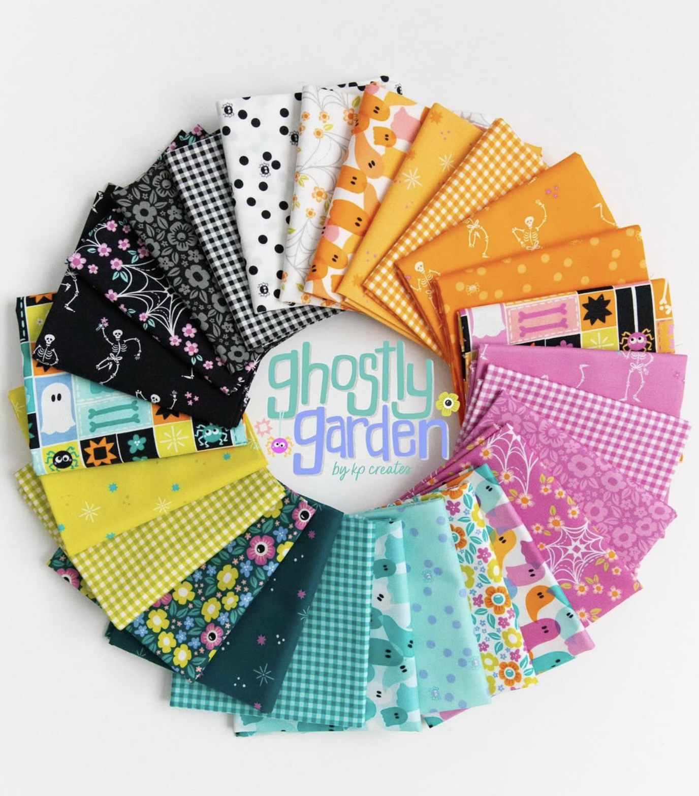 If I could only use one fabric from Ghostly Garden, it would be either Sew Spooky or Bitty Gingham. Sew Spooky has so many fun fussy cutting opportunities and would make adorable bags. Bitty Gingham is just a classic and you can never go wrong with a good gingham.